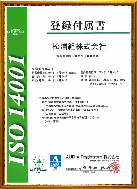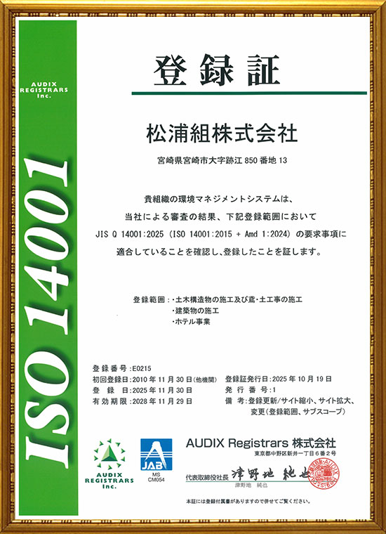 松浦組株式会社は要求事項に適合している企業として認証を取得しました。